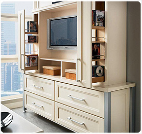 Take your media center from hodge-podge to harmonious. KraftMaid Storage Solutions marshal your movies and music with rollout trays to keep every title in its place. Smart pocket doors and pantry pull-out shelves make stylish hideaways for all your entertainment essentials. Kick back and relax!